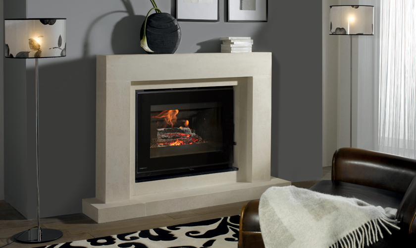 Cheminée en pierre Blanche de Provence et granit noir Zimbabwe