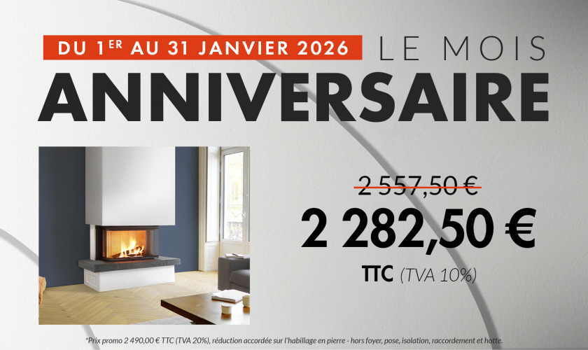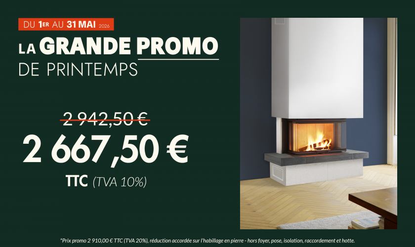 Profitez d'une belle flambée dans cette somptueuse cheminée moderne en pierre bleue sablée et en pierre de Brétignac beige.