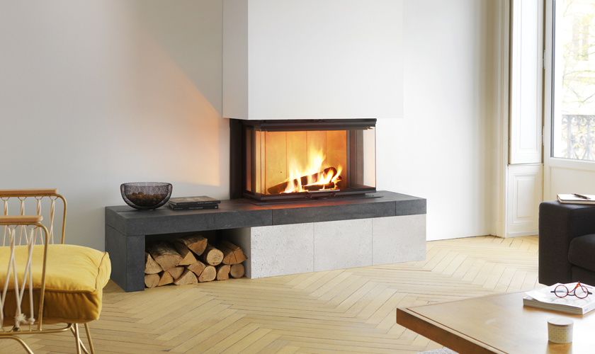 Profitez d'une belle flambée dans cette somptueuse cheminée moderne en pierre bleue et blanche de Provence.