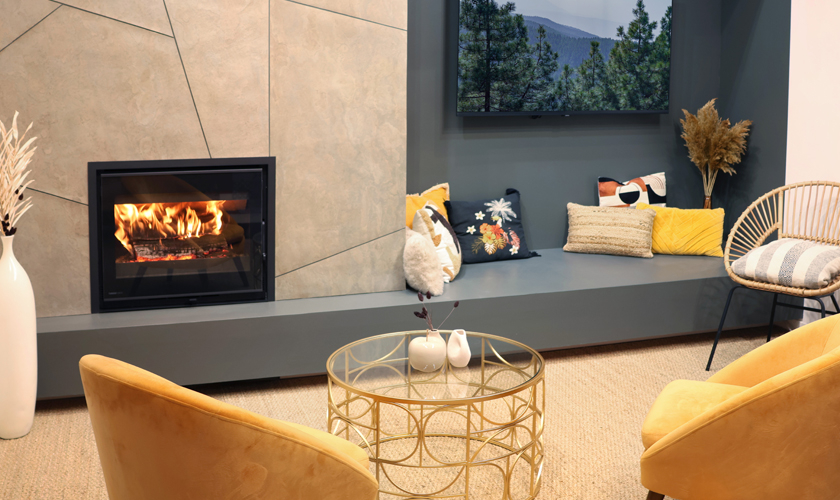 L'air secondaire descend le long de la vitre diminuant fortement le dépôt des suies pour profiter pleinement de la vision du feu.