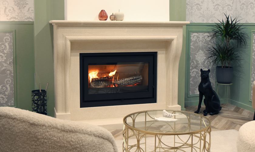 Le foyer VITA 90 a une grande vision du feu grâce à une large chambre de combustion, pouvant ainsi accueillir des bûches de 60 cm.