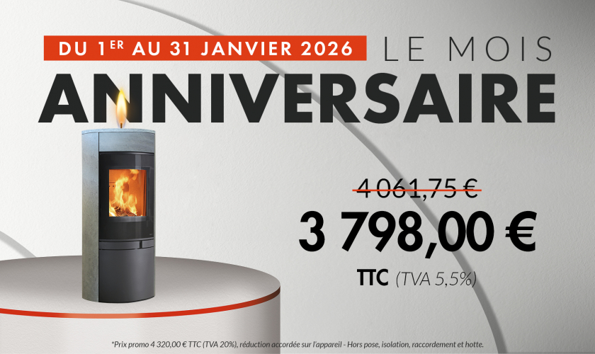 Sa forme ronde avec l'arrière plat permet d'optimiser son agencement. Il est équipé de deux grilles foyères de 4,5 et 7 kW qui optimisent les performances, il se positionne ainsi en Flamme verte 7 étoiles.