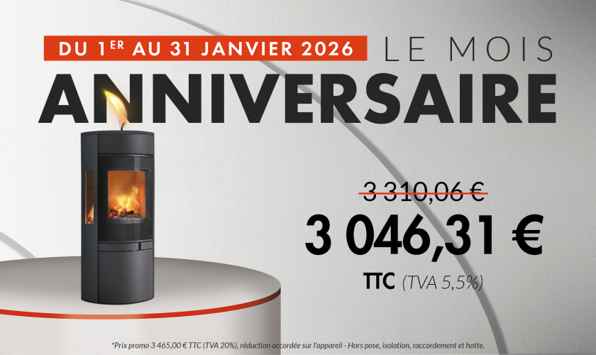 Sa forme ronde avec l'arrière plat permet d'optimiser son agencement. Il est équipé de deux grilles foyères de 4,5 et 7 kW qui optimisent les performances, il se positionne ainsi en Flamme verte 7 étoiles.