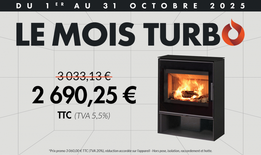 Il possède une grande porte vitrée et une large chambre de combustion en chamotte (bûches de 45 cm de large). Mais il optimise l’espace grâce à sa faible profondeur: 37 cm.