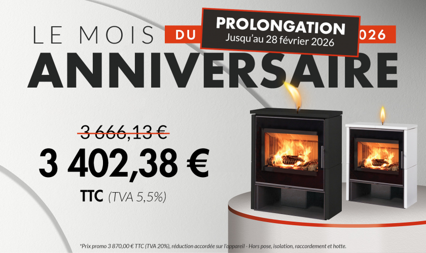 Il possède une grande porte vitrée et une large chambre de combustion en chamotte (bûches de 45 cm de large). Mais il optimise l’espace grâce à sa faible profondeur: 37 cm.
