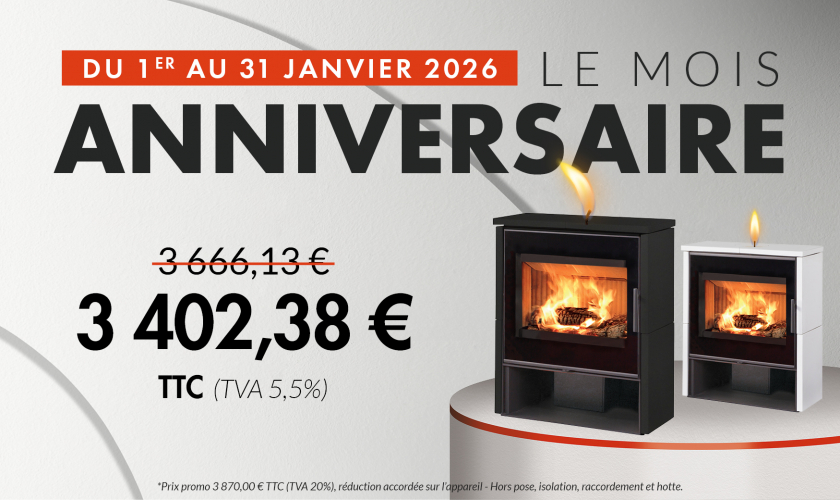 Il possède une grande porte vitrée et une large chambre de combustion en chamotte (bûches de 45 cm de large). Mais il optimise l’espace grâce à sa faible profondeur: 37 cm.