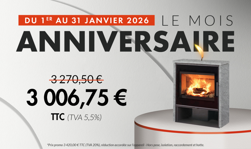 Il possède une grande porte vitrée et une large chambre de combustion en chamotte (bûches de 45cm de large). Mais il optimise l’espace grâce à sa faible profondeur : 37 cm.