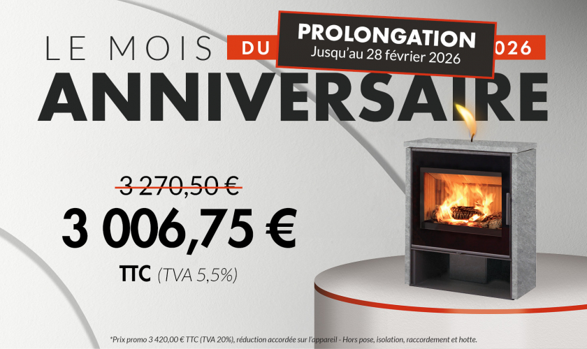 Il possède une grande porte vitrée et une large chambre de combustion en chamotte (bûches de 45cm de large). Mais il optimise l’espace grâce à sa faible profondeur : 37 cm.