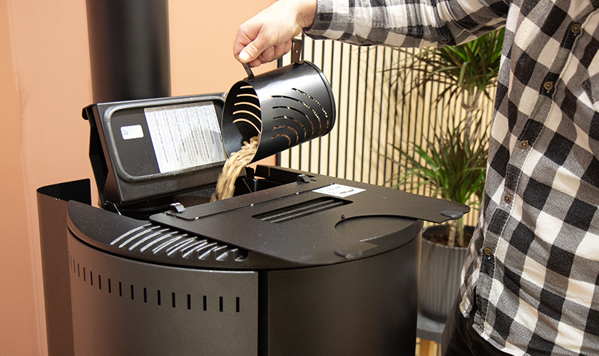 Les granulés sont acheminés dans le braséro grâce à un système d'alimentation type vis sans fin. Cela permet d'augmenter le réservoir à granulés tout en ayant un poêle compact.