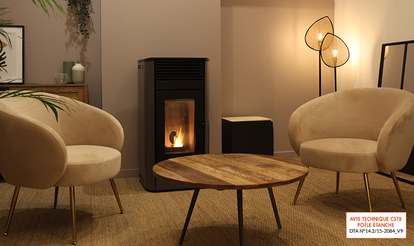 En convection naturelle, la ventilation est stoppée et le niveau sonore de l’appareil est très fortement réduit. L’air frais vient se réchauffer naturellement autour des échangeurs et ressort en partie haute du poêle.
