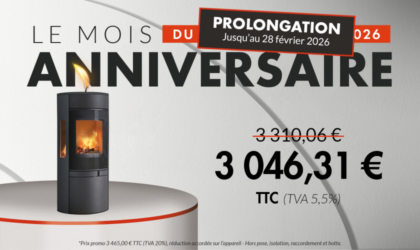 Sa forme ronde avec l'arrière plat permet d'optimiser son agencement. Il est équipé de deux grilles foyères de 4,5 et 7 kW qui optimisent les performances, il se positionne ainsi en Flamme verte 7 étoiles.