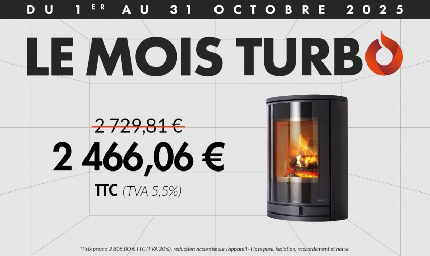 Sa forme ronde avec l'arrière plat permet d'optimiser son agencement. Il est équipé de deux grilles foyères de 4,5 et 7 kW qui optimisent les performances, il se positionne ainsi en Flamme verte 7 étoiles.