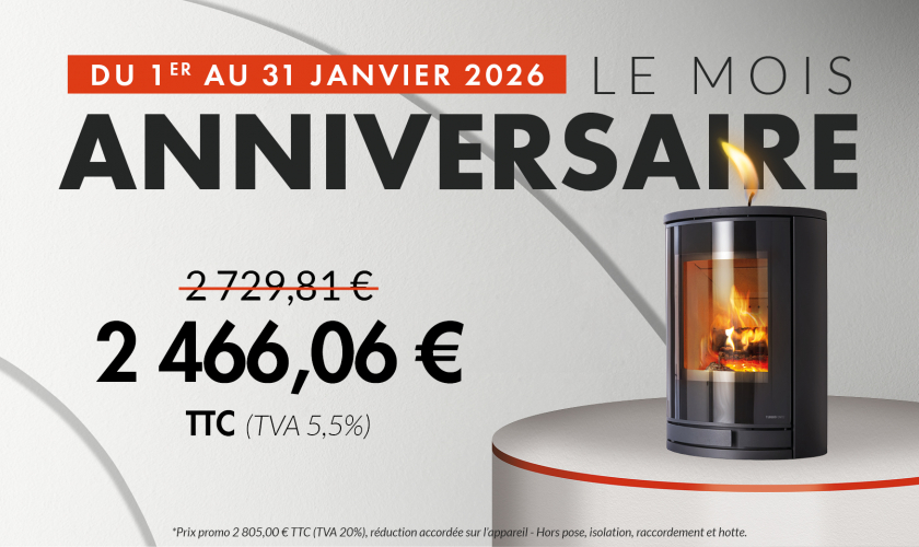 Sa forme ronde avec l'arrière plat permet d'optimiser son agencement. Il est équipé de deux grilles foyères de 4,5 et 7 kW qui optimisent les performances, il se positionne ainsi en Flamme verte 7 étoiles.