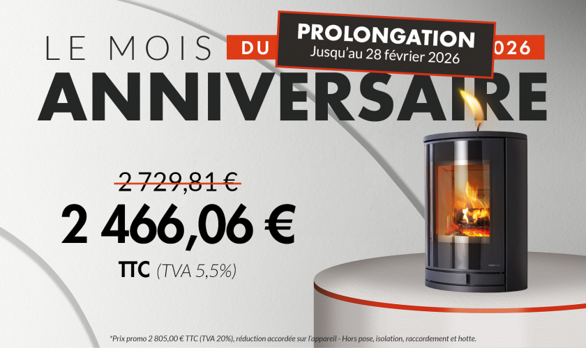 Sa forme ronde avec l'arrière plat permet d'optimiser son agencement. Il est équipé de deux grilles foyères de 4,5 et 7 kW qui optimisent les performances, il se positionne ainsi en Flamme verte 7 étoiles.