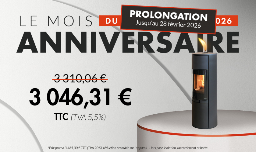 Sa forme ronde avec l'arrière plat permet d'optimiser son agencement. Il est équipé de deux grilles foyères de 4,5 et 7 kW qui optimisent les performances, il se positionne ainsi en Flamme verte 7 étoiles.