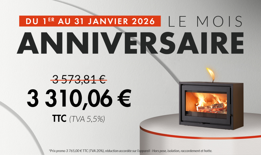 Il donne une grande vision des flammes avec une large chambre de combustion qui peut accueillir des bûches de 60 cm.