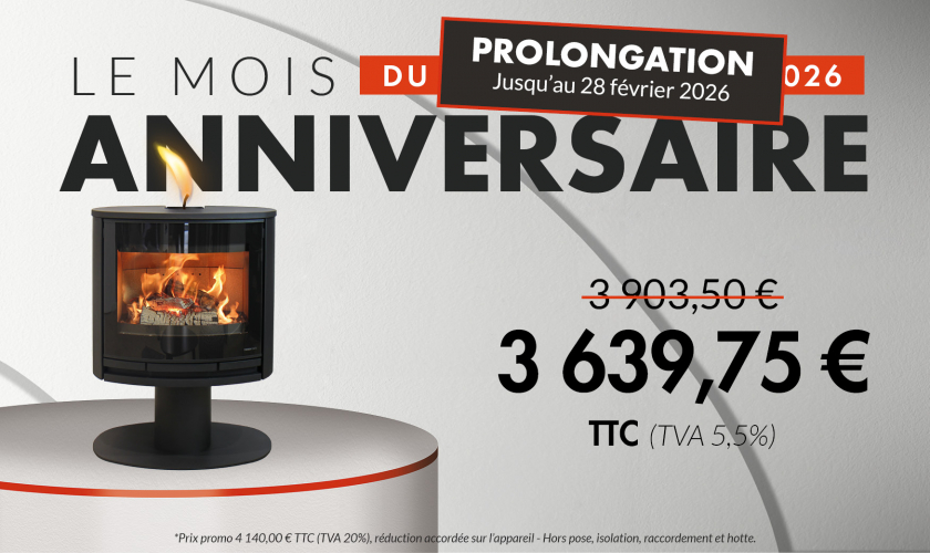 Le poêle à bois Mably POD est à la fois pratique, esthétique et généreux, conçu avec des matériaux modernes et élégants avec un dessus en fonte. Il peut être alimenté avec des bûches de 50 cm.