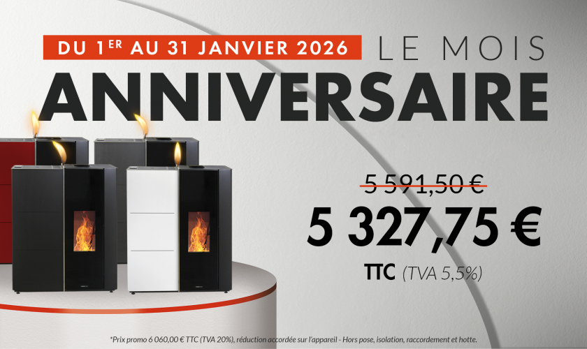 Le poêle à granulés MYA apporte performance et élégance avec sa façade contemporaine. Peu profond (33cm), il optimise l'espace grâce à sa sortie des fumées situées sur le dessus ou à l'arrière de l'appareil.
